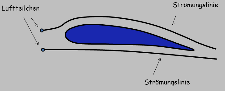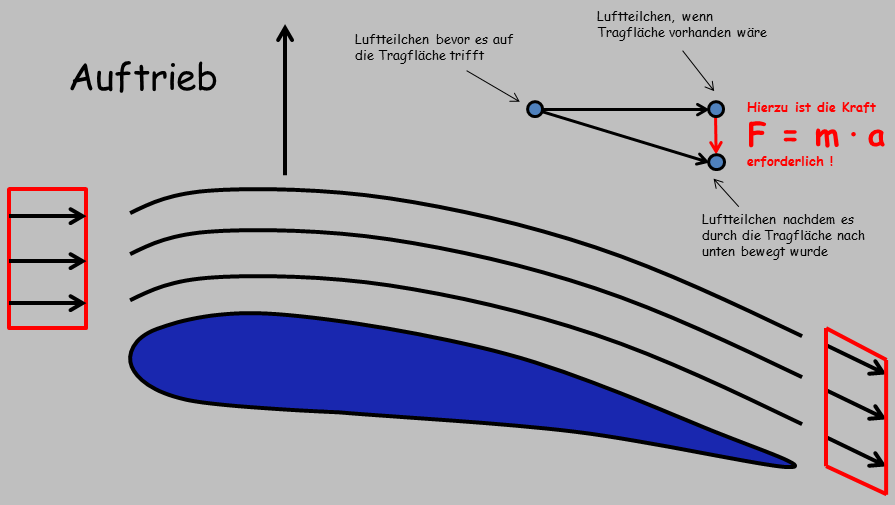 Also merken wir uns: Der Auftrieb wird durch Umlenken der Luft nach unten erzeugt.